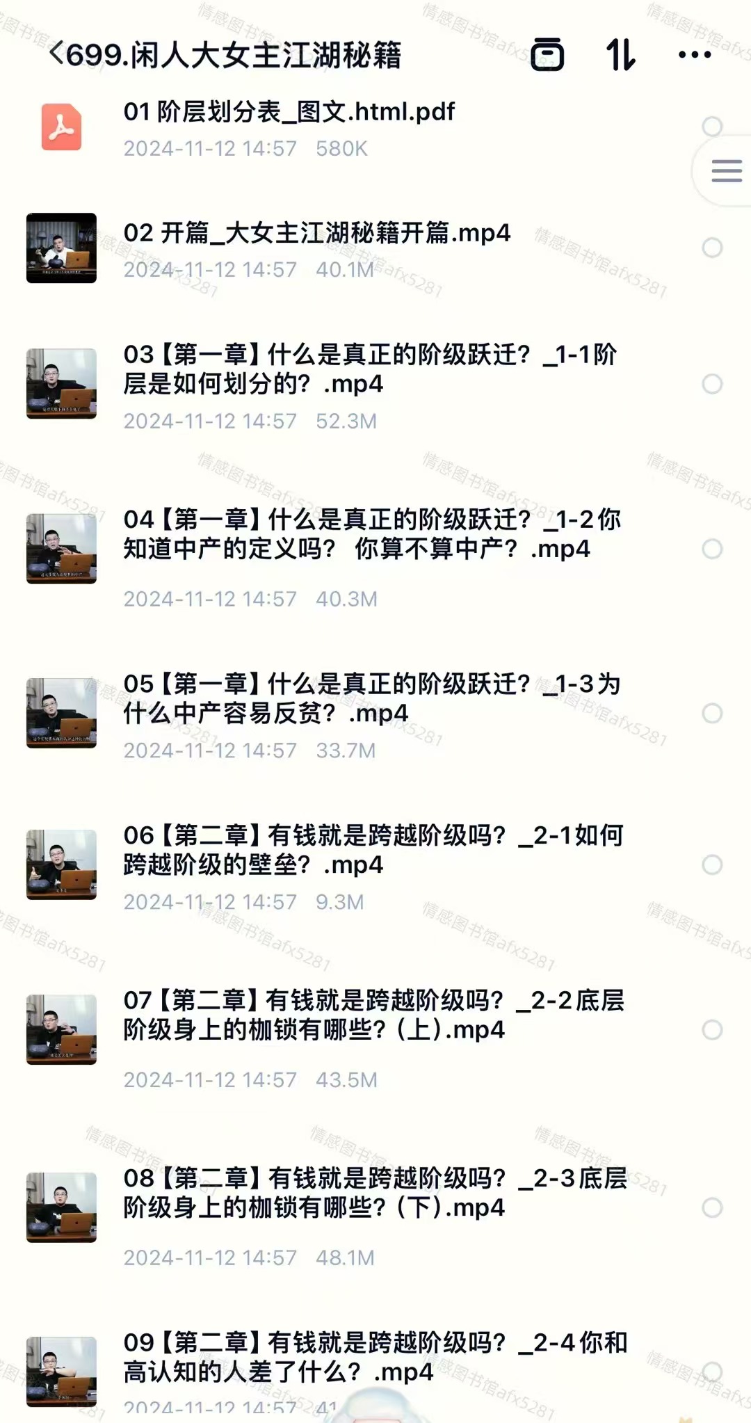 左闲人课程,大女主江湖秘籍目录: