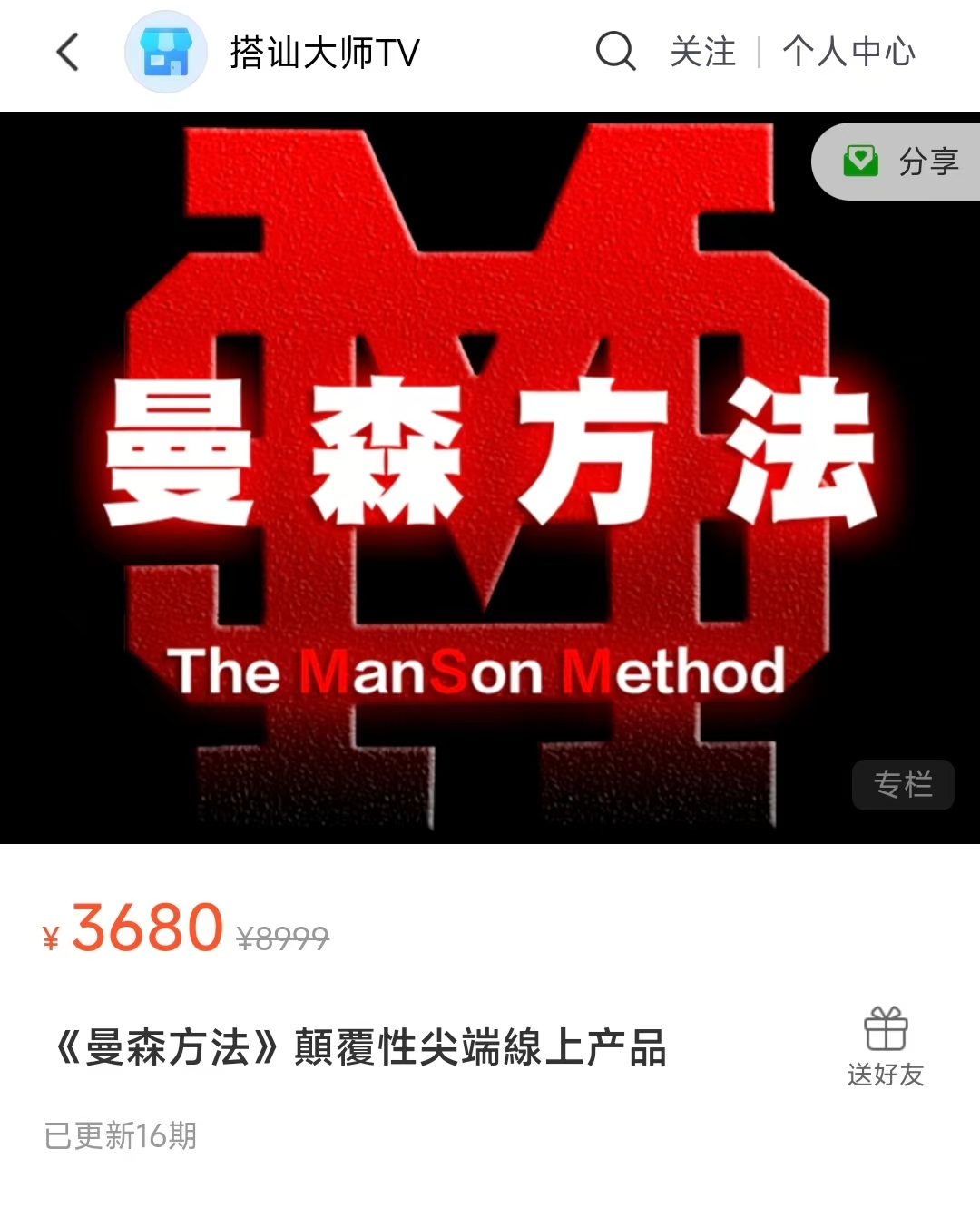 综上所述,《曼森方法》是一套系统、全面且实用的社交教学课程。它不仅提供了丰富的社交理论与技巧,更通过实战案例让学员看到了社交的无限魅力与可能性。通过这门课程的学习与实践,学员将逐渐成长为社交高手,享受每一次社交带来的乐趣与成就。