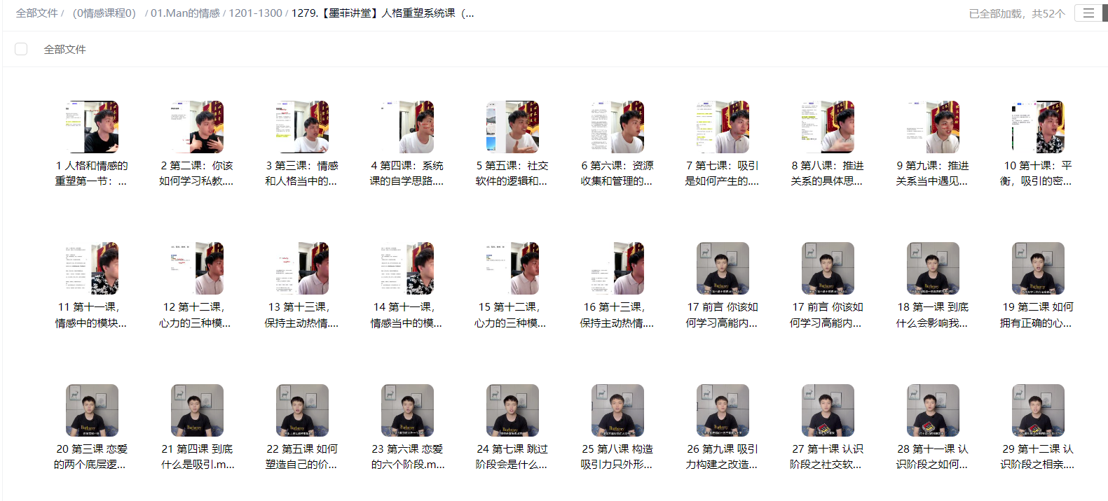 以下为完整课程内容,课程共计51节,涵盖情感人格重塑及恋爱全流程: